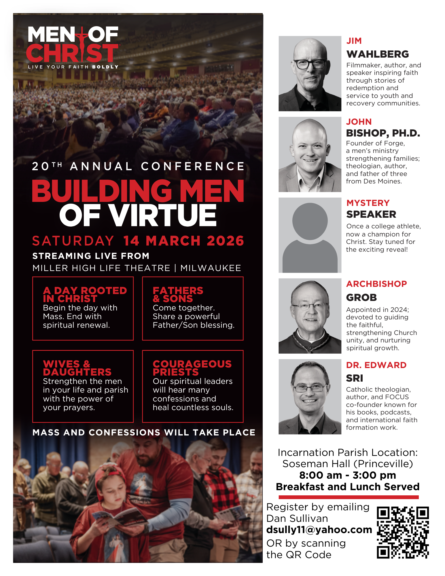 Incarnation Parish has recently formed by the merger of Saint Dominic of Wyoming, Saint John the Baptist of Bradford, Saint Joseph of Brimfield, and Saint Mary of the Woods of Princeville. We are four beautiful churches with rich Catholic histories, looking to grow in faith by coming together as one community. We are rich in what matters to God – faith, hope and charity, and we look forward to sharing our riches with our rural community.