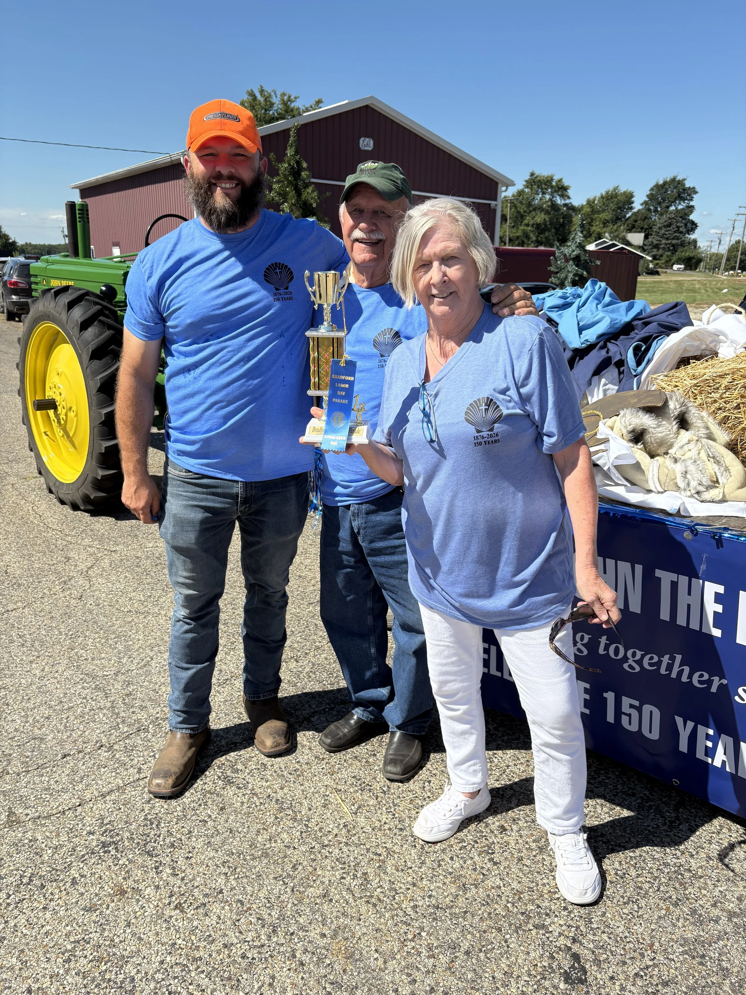 Over Labor Day Weekend 2025, Bradford had their annual Labor Day festivities including a great parade. Saint John’s church entered a float to celebrate their 150th anniversary. Once the parade ended, the float was awarded a first place trophy! Congratulations to Angie Stange and her team.
